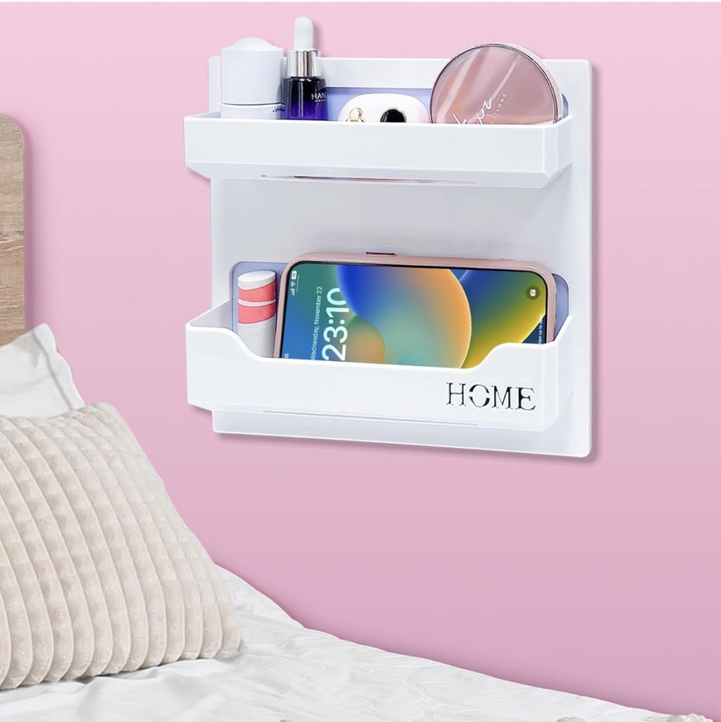 These bedside floating shelves can hold all the accessories and it is easy installation.