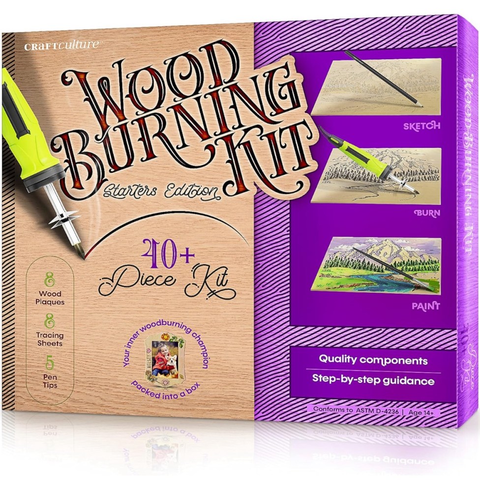 Follow the step-by-step instructions, sketch, burn, and paint and produce 8 art projects.